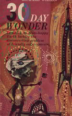 An original pen and ink drawing on the inside of a vintage paperback cover.