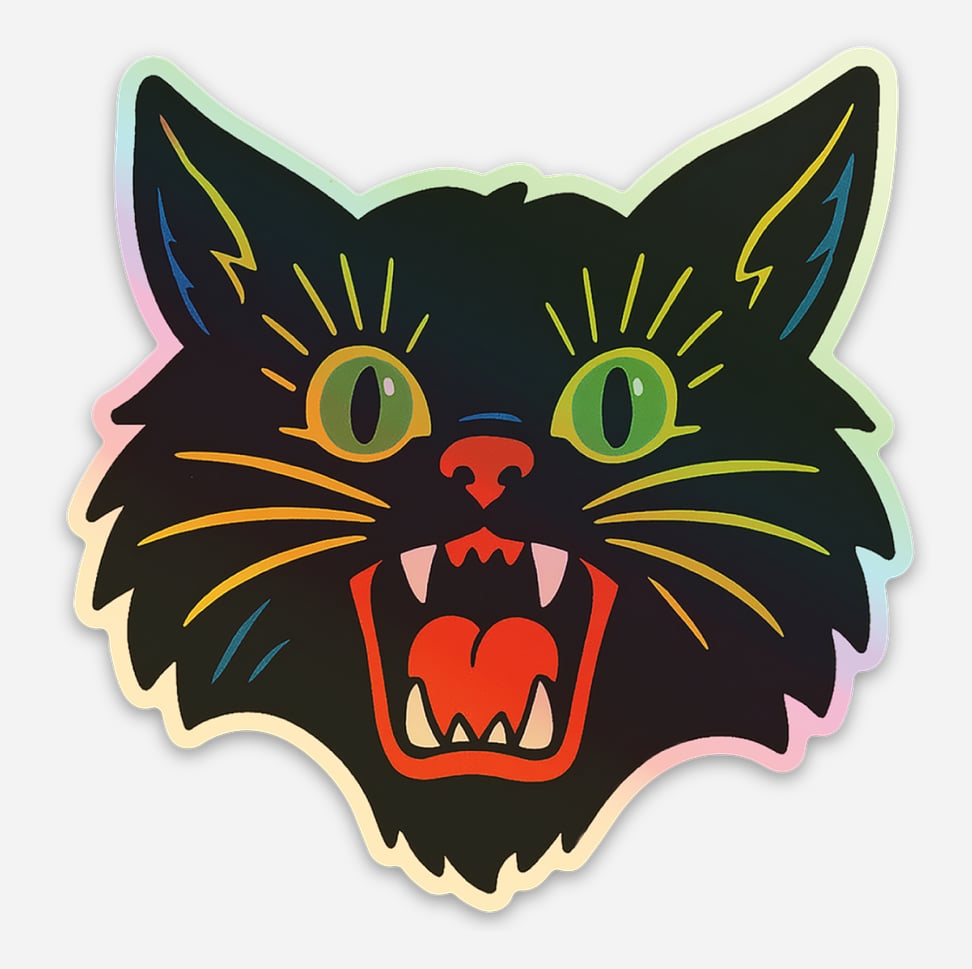 'HOLOGRAM Black Cat' Vinyl Sticker